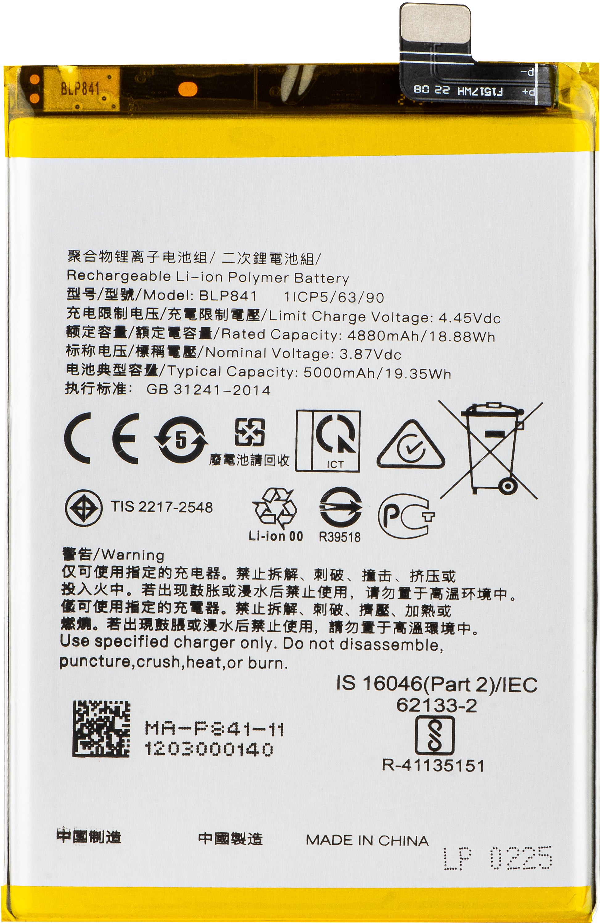 | Model acumulator | BLP841 |