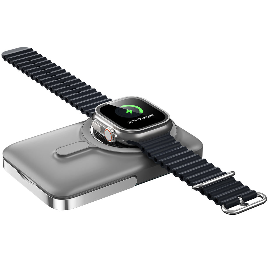 WiWu Wi-P018 este o baterie externa wireless 3-in-1, perfecta pentru a incarca simultan telefonul mobil, ceasul si castile.