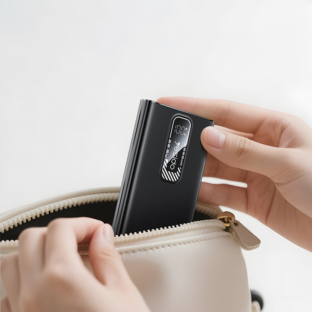 Power bank-ul Yesido are un format subtire si usor, care permite transportul comod in buzunar, geanta sau rucsac.