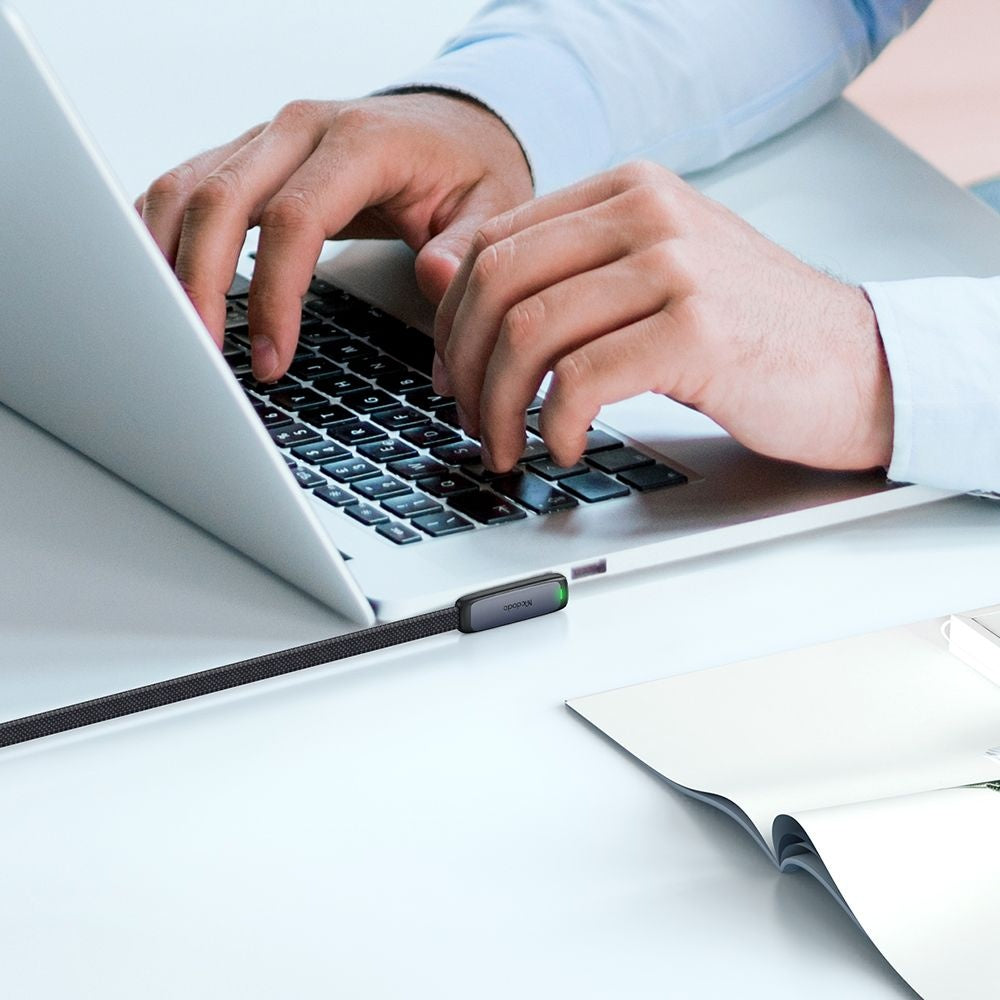 Cablul Mcdodo are un conector la 90 pentru utilizare comoda, iar forma plata previne incalcirea si ofera flexibilitate si rezistenta la indoiri.