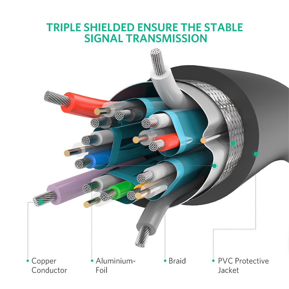 Conductor din cupru placat, protectie tripla si conectori aurii - pentru o transmisie fiabilia, fara interferente si cu rezistenta in timp.
