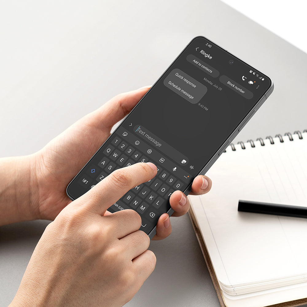 • Noi iti recomandam aceasta folia de sticla Ringke. Are un strat oleofobic care o face rezistenta la praf, amprente si urme de murdarie.
