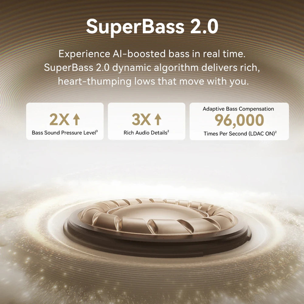 Acest setup produce o scena sonora larga, iar algoritmul proprietar SuperBass 2.0 (AI) ajusteaza in timp real energia basului.