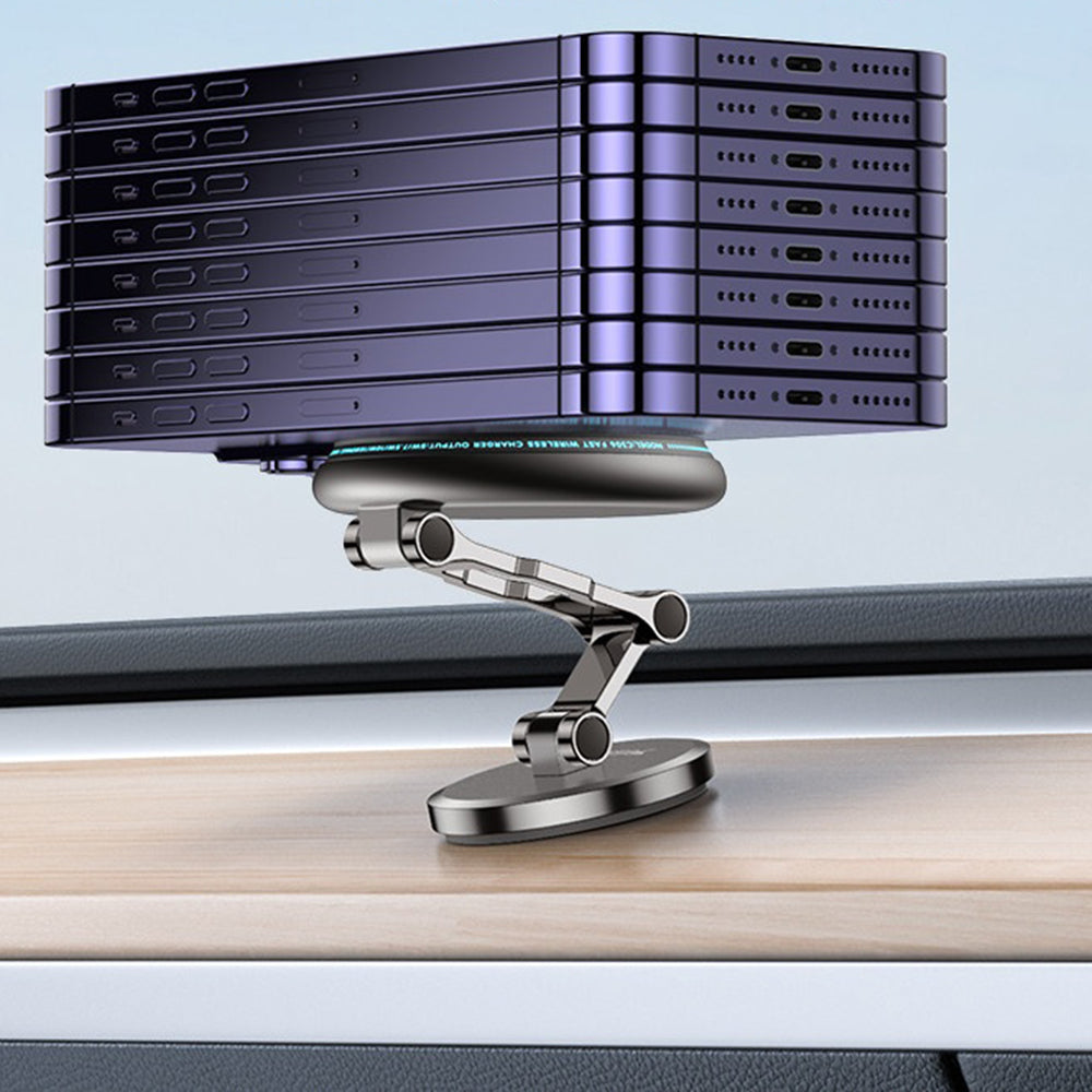 Suportul integreaza o tehnologie de incarcare wireless de 15W care ofera o alimentare rapida si eficienta.