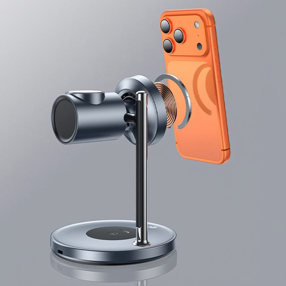 Statia de incarcare alimenteaza telefonul, ceasul inteligent si castile wireless in acelasi timp, dintr-un singur punct de alimentare.