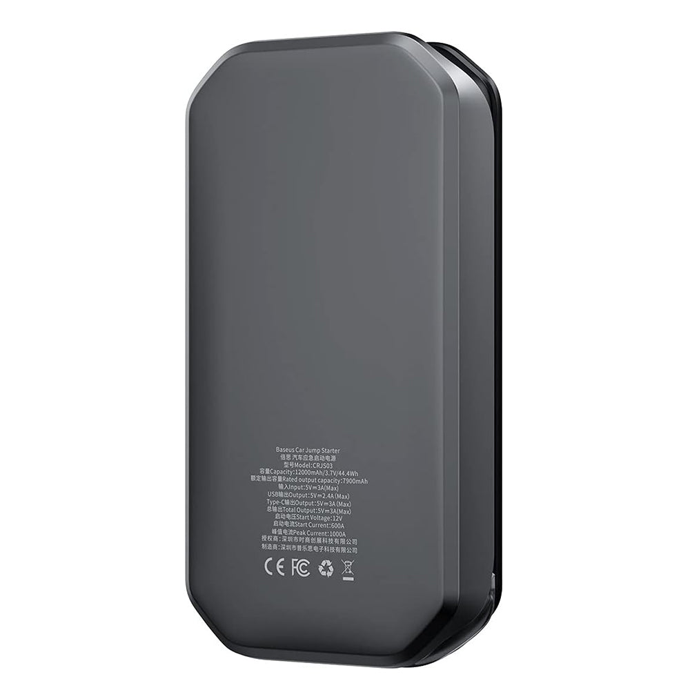 Pachetul include: jump starter, clesti de pornire, cablu USB la Type-C.