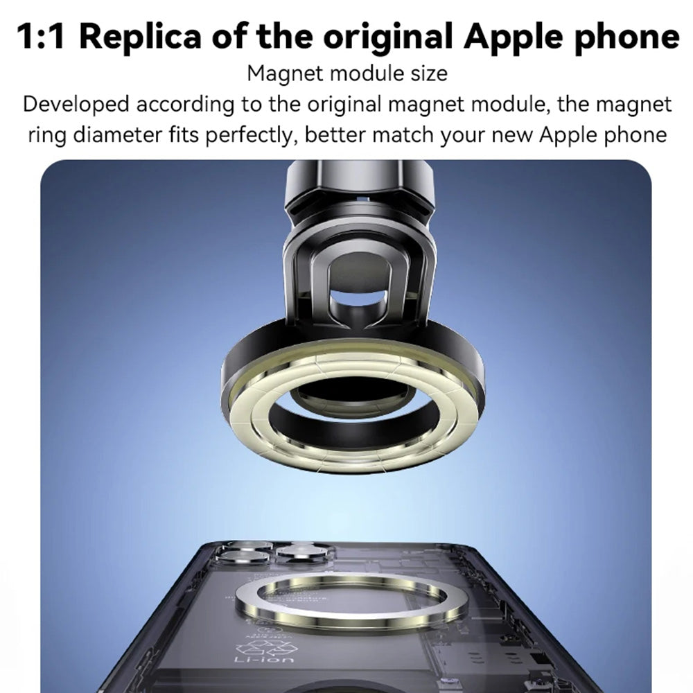 Dotat cu un panou magnetic rotund si un inel dublu cu 20 de magneti puternici, suportul asigura o prindere stabila