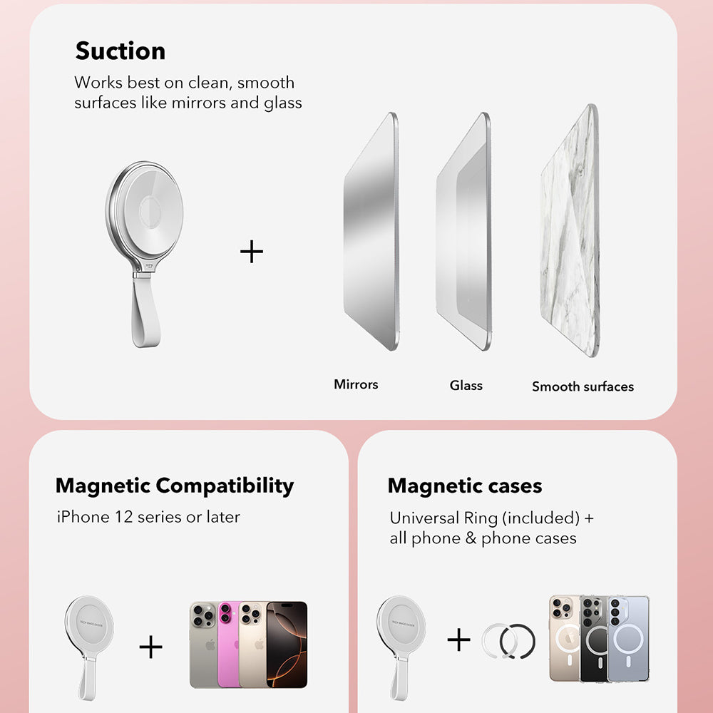 Dispune de o ventuza puternica ce asigura o fixare sigura pe orice suprafata curata si neteda.